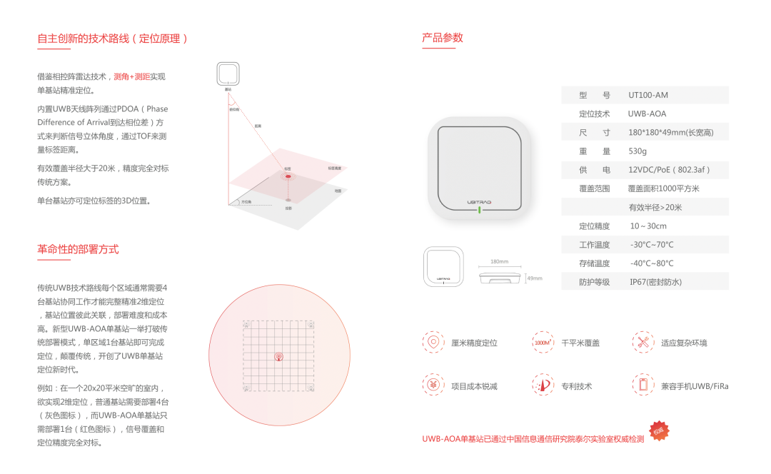 該方案在法院數(shù)字法庭、智慧監(jiān)所的智慧監(jiān)倉建設(shè)中降本尤為突出。以某法院為例,數(shù)字法庭建設(shè)中,采用傳統(tǒng)UWB高精度定位需要4臺基站,但最新的UWB-AOA方案只需要1臺基站,優(yōu)于藍(lán)牙AOA,且不因?qū)痈呦拗聘采w范圍,其有效覆蓋半徑20m完全滿足所有數(shù)字法庭的建設(shè),并且在一維環(huán)境下,支持和傳統(tǒng)的UWB基站混用。使得整個方案在設(shè)計、部署上都實現(xiàn)了巨大的降本優(yōu)勢。