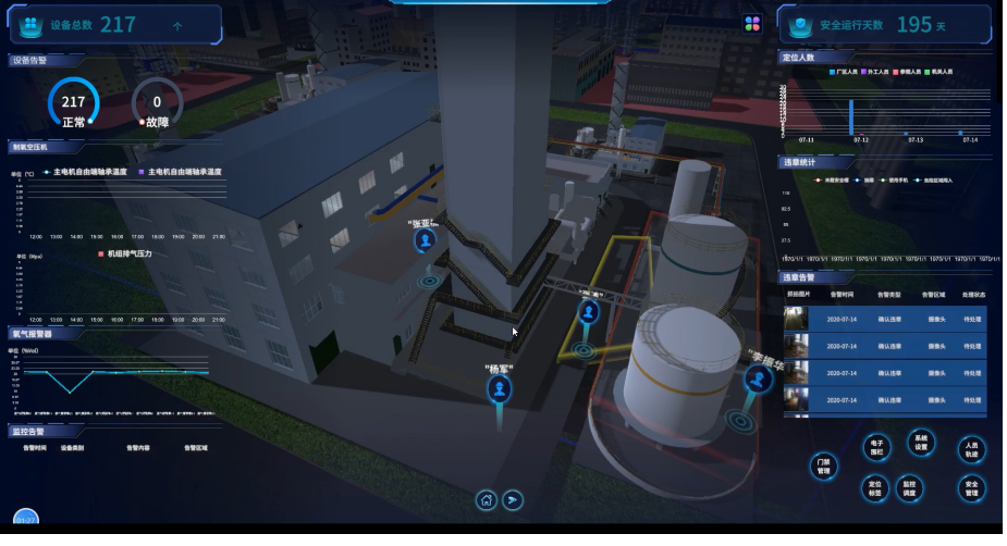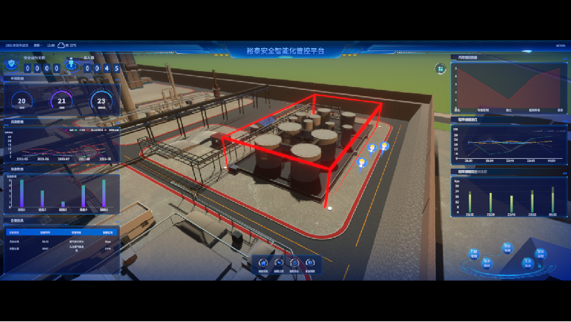 利用數(shù)字化技術(shù)對(duì)裕泰化工的焦化廠、裕隆化工、燃?xì)馊齻€(gè)廠區(qū)建模,實(shí)現(xiàn)人員行為管理數(shù)字化、可視化、信息化。