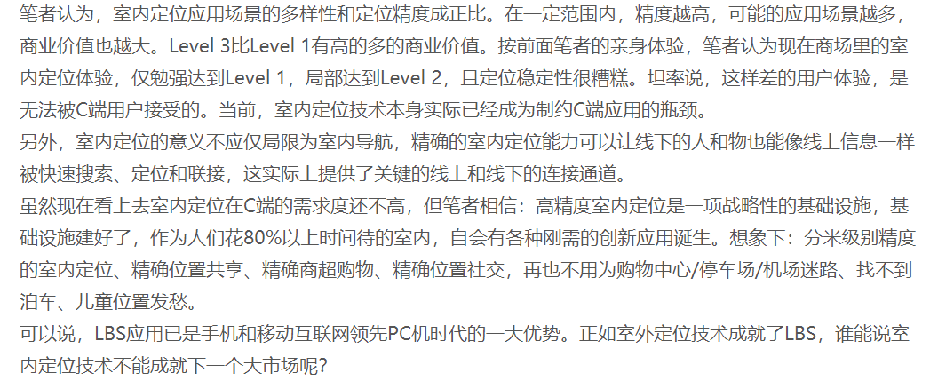 據有關統計,人的一生80%以上的時間在室內,移動通信服務80%發生在室內,80%的信息與時間和位置有關,想必室內定位也具有做大的潛力。正是看好這個方向,從2011年前后開始,國際、國內眾多室內定位創業公司如雨后春筍般出現,頂級互聯網公司也開始布局室內定位技術。