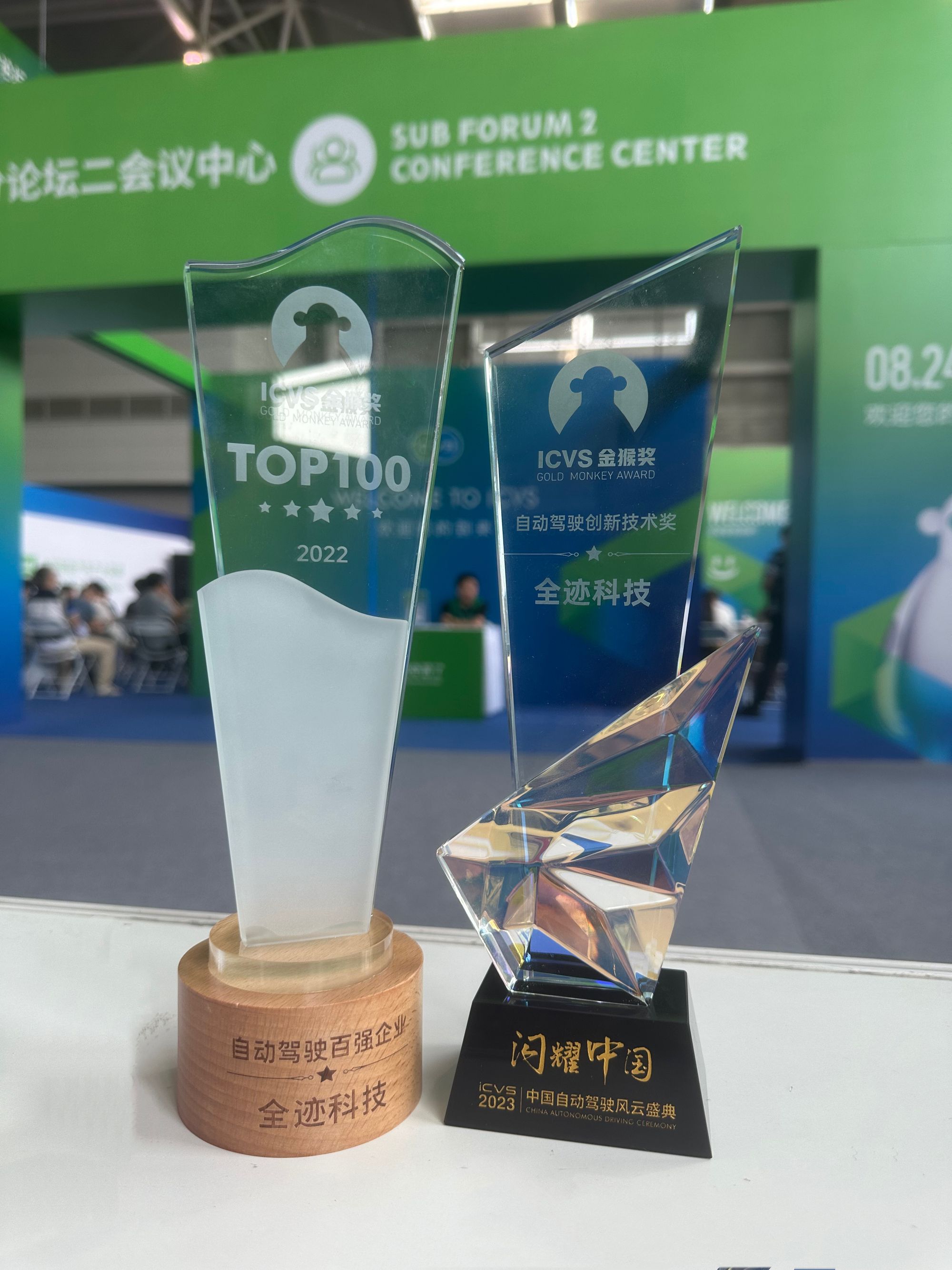 大會期間,全跡科技榮獲ICVS金猴獎 “中國自動駕駛百強企業” 及 “自動駕駛創新技術獎” 雙項大獎。